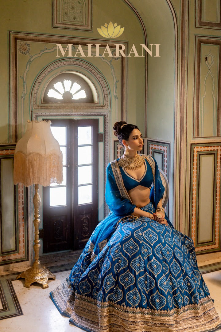 A Spun Anarkali paired with pant and bandhani hand embroidered dupatta.