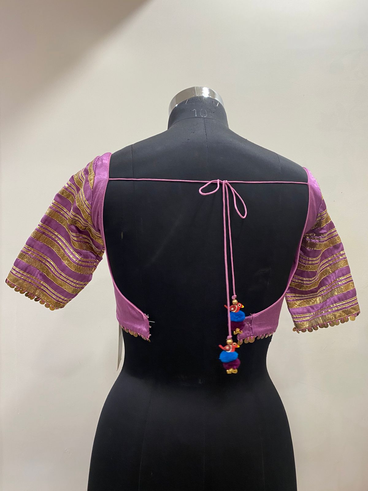 A Gaji Silk blouse featuring Toi and Lumpi detailing.