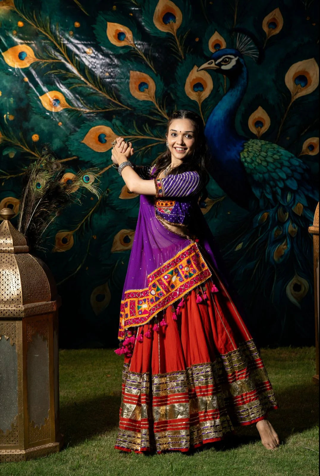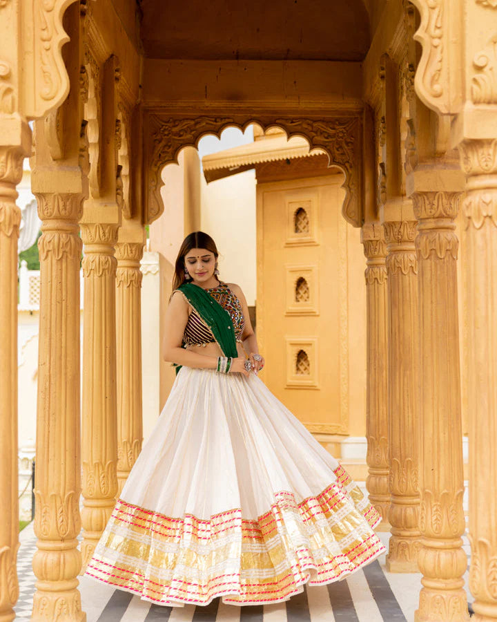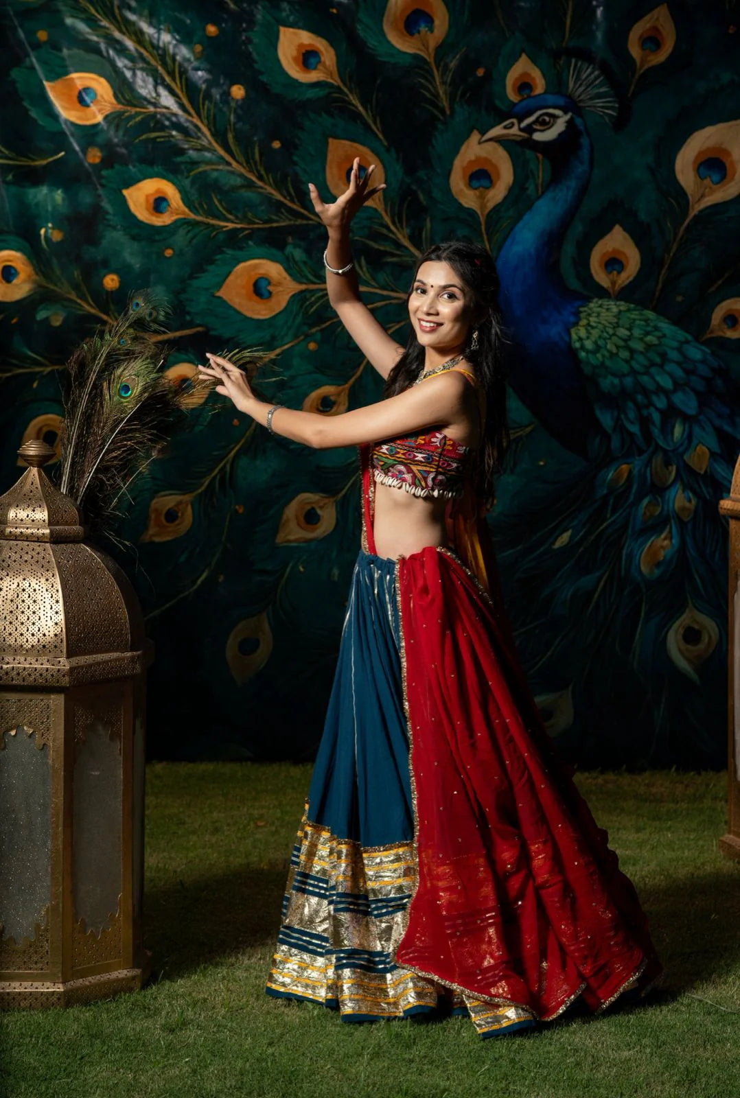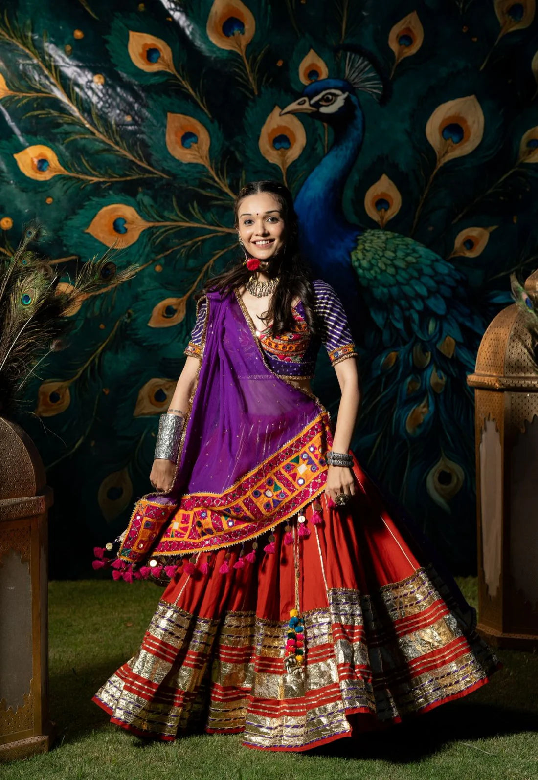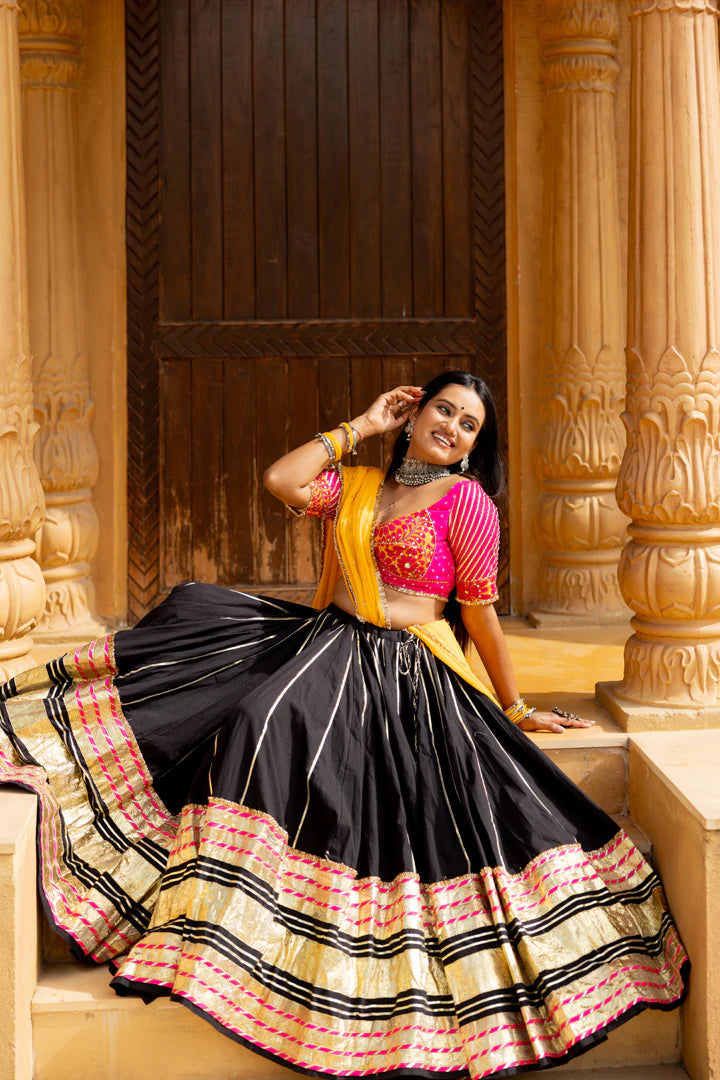 A Leheriya lumpi gamthi skirt with toi creating a 10-meter flare.
