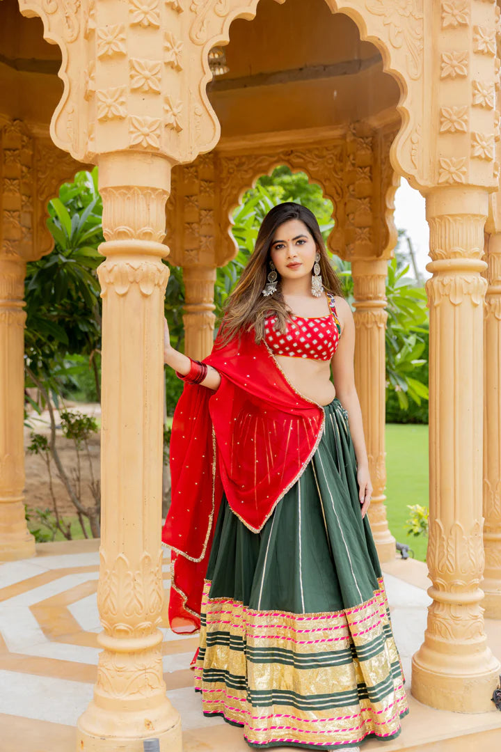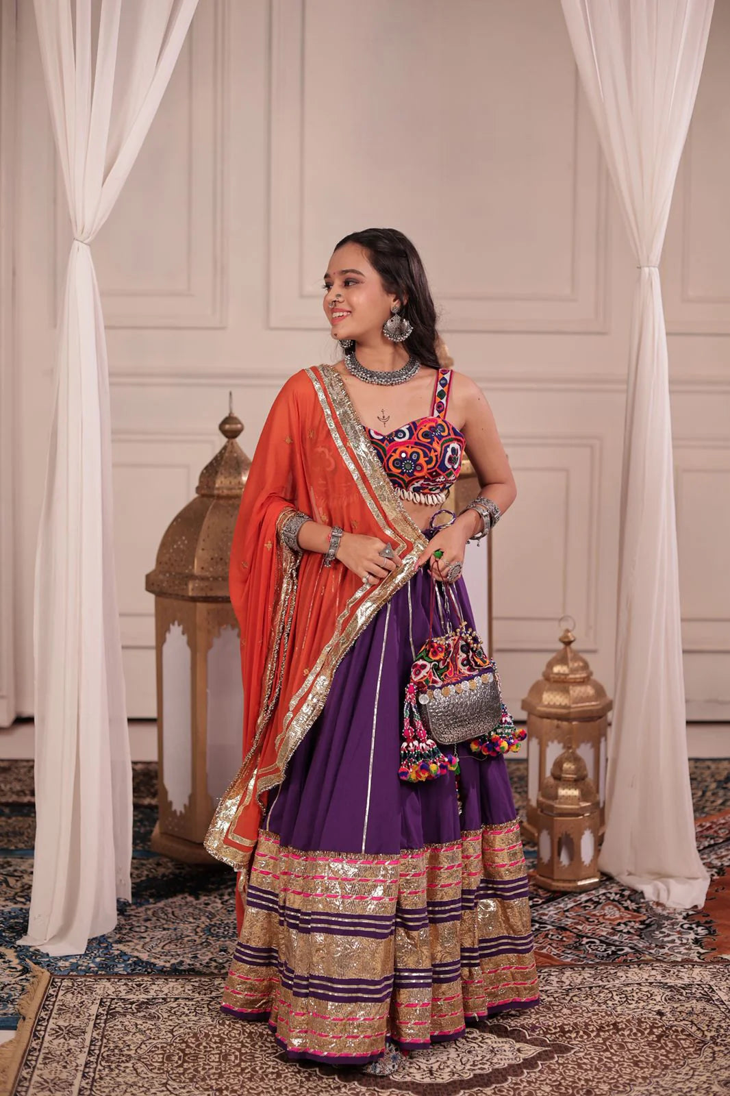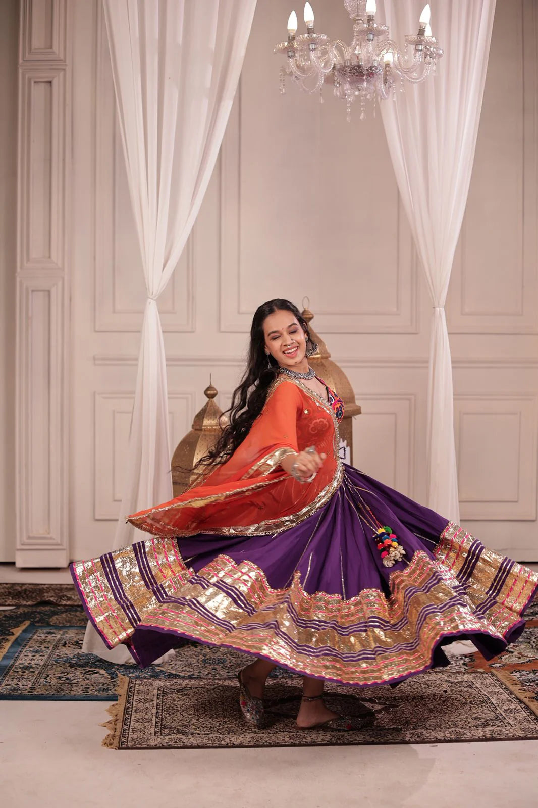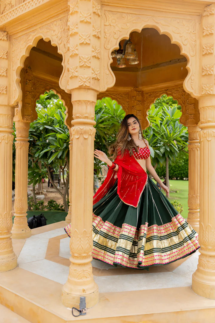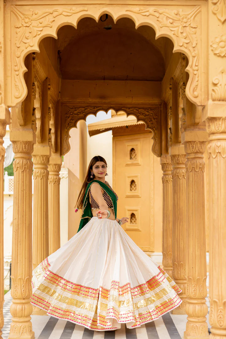 A Leheriya lumpi gamthi skirt with toi creating a 10-meter flare.