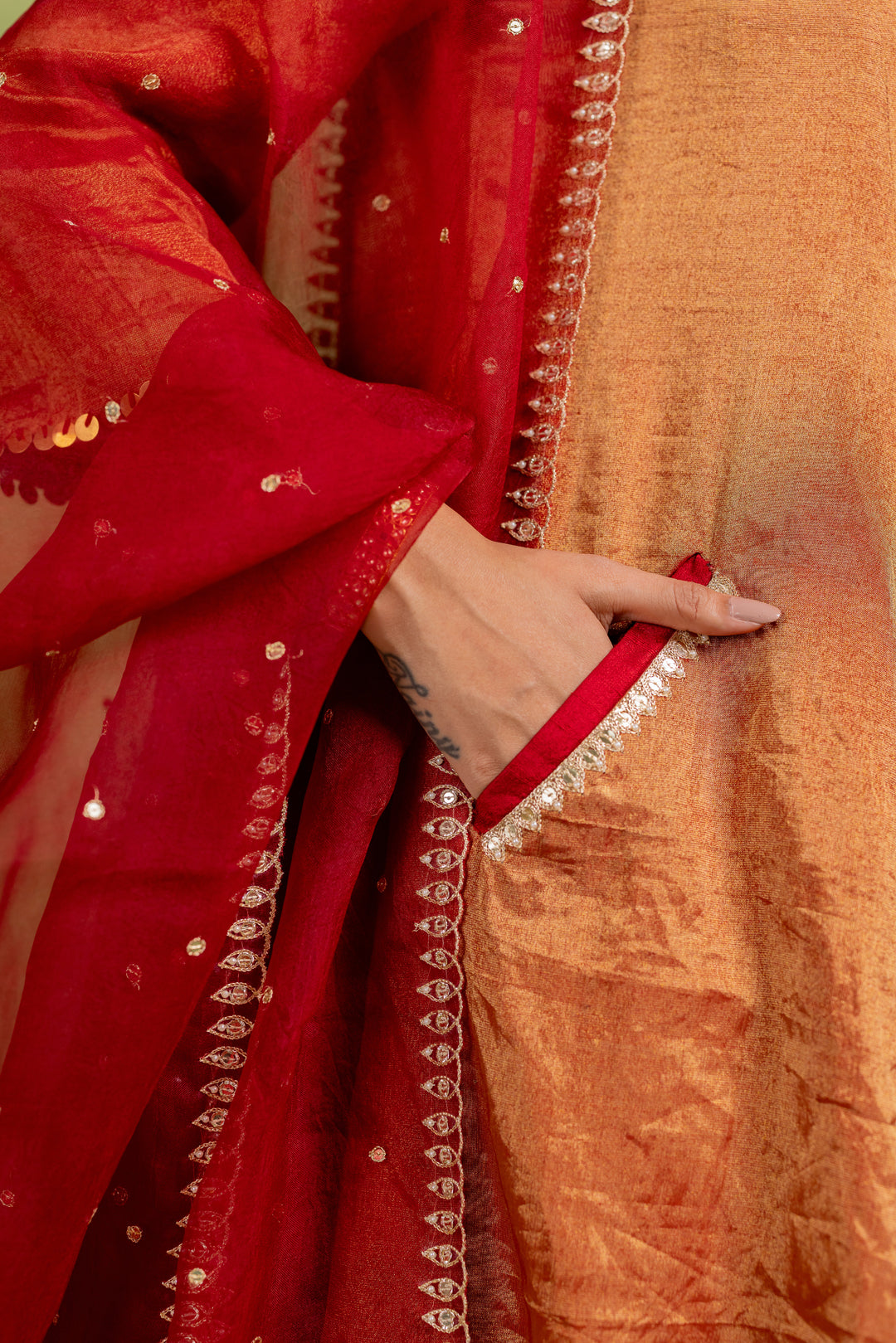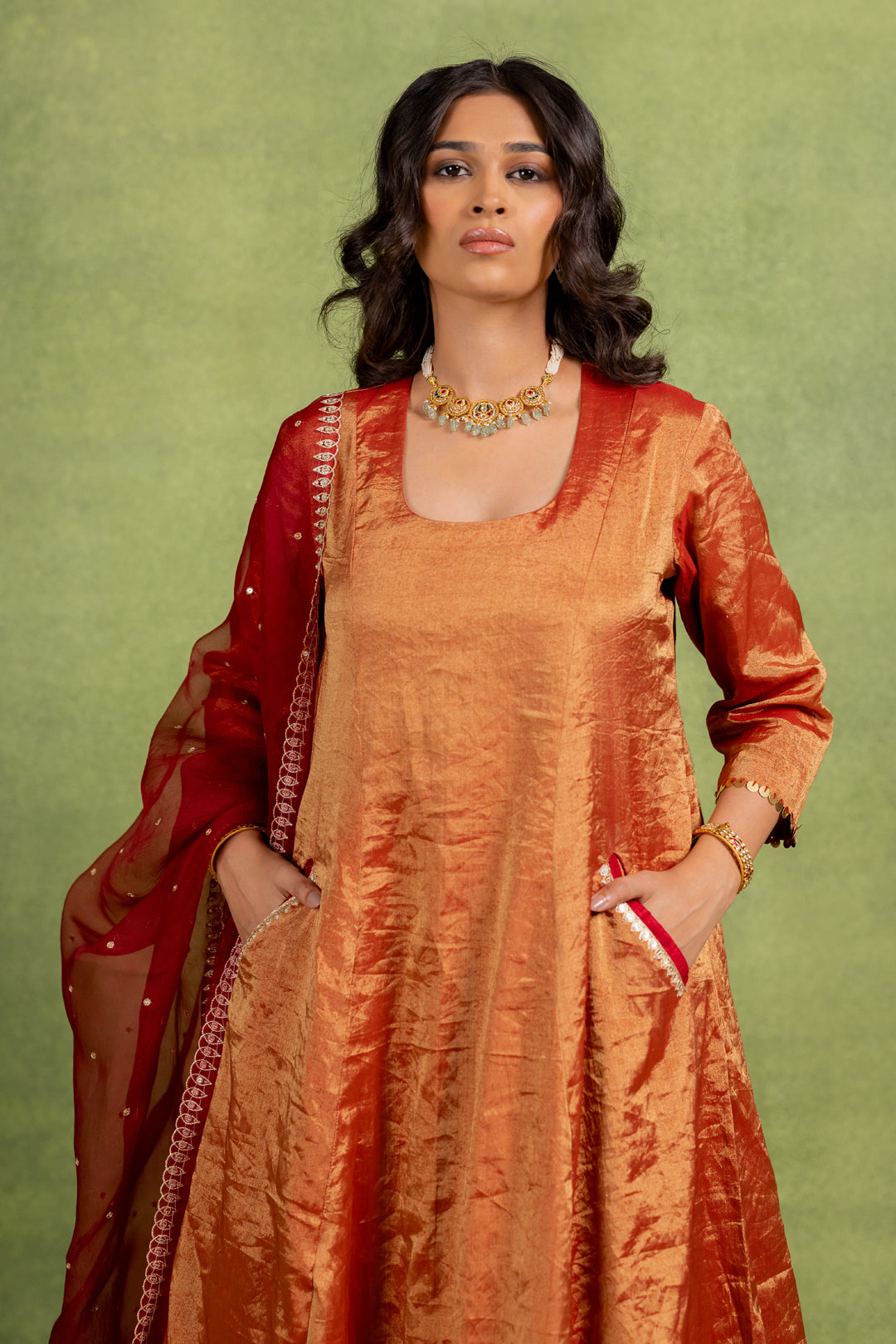 This Coord Set includes A-line kurta and matching pant with hand-embroidered details on the pocket and dupatta.