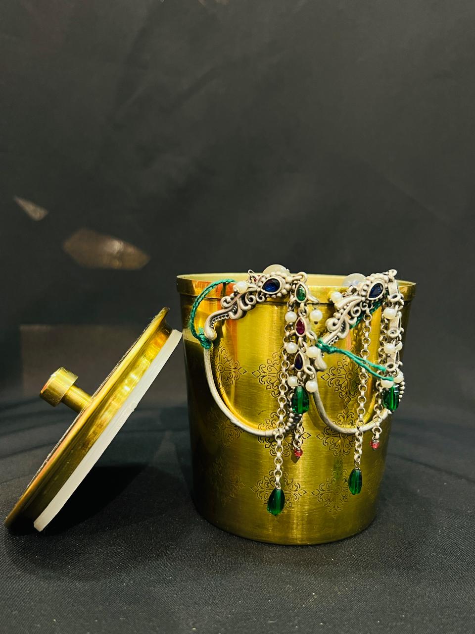 This is a oxidised earring with single colour stone attached to it.