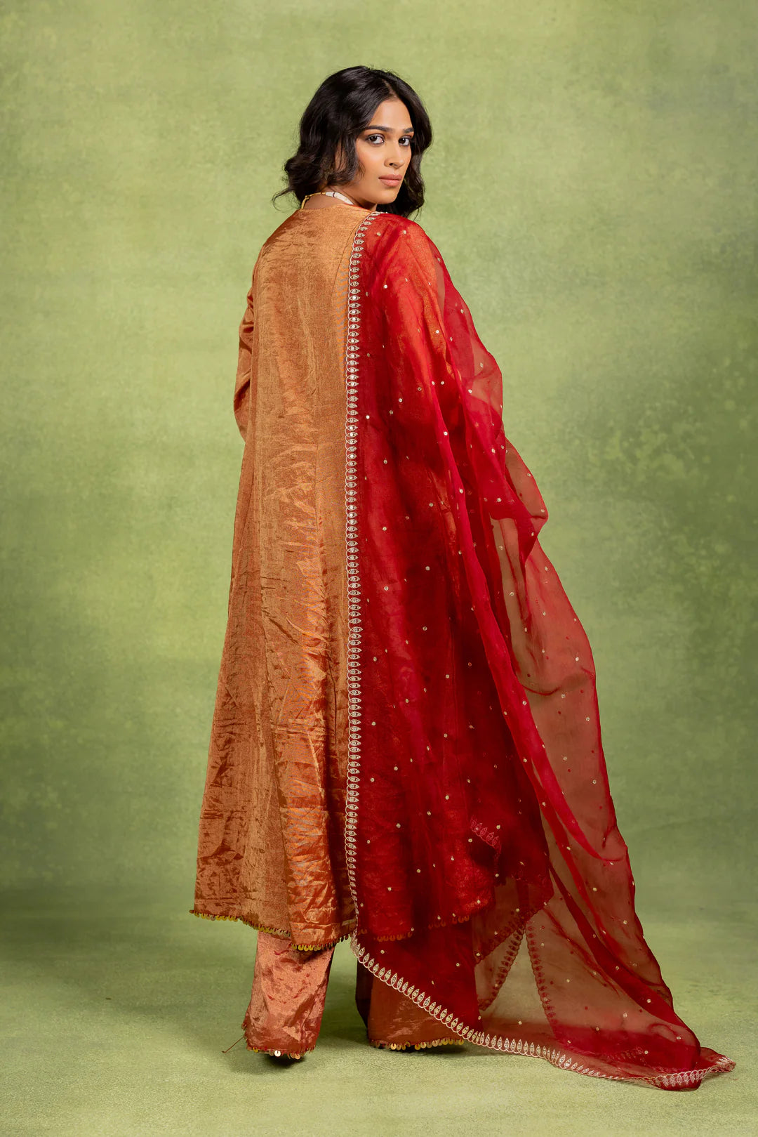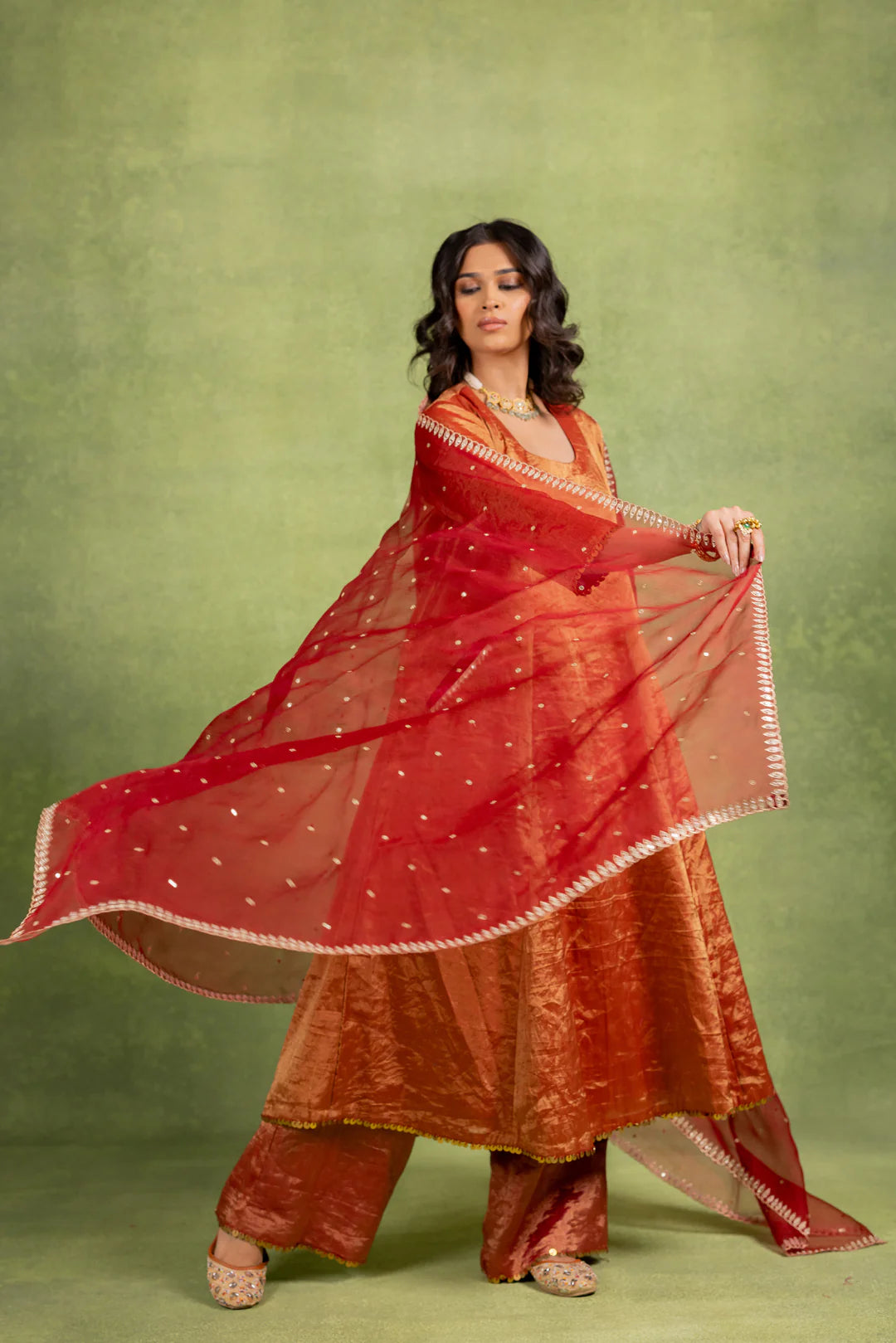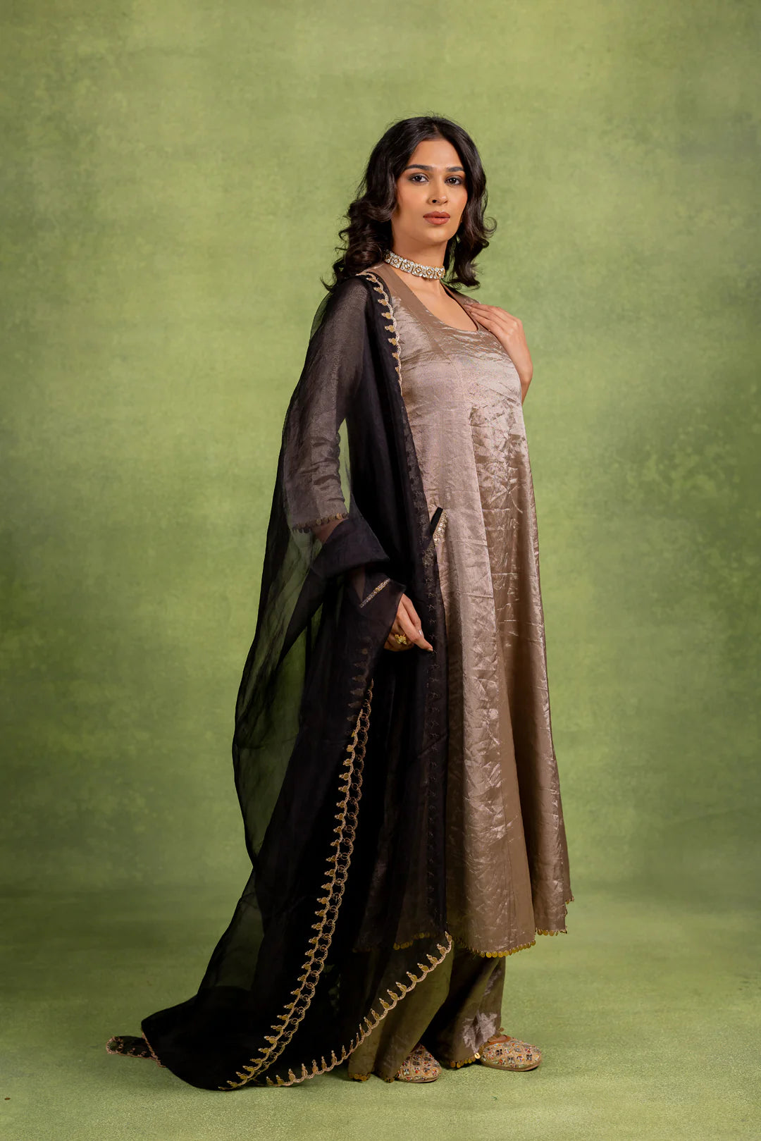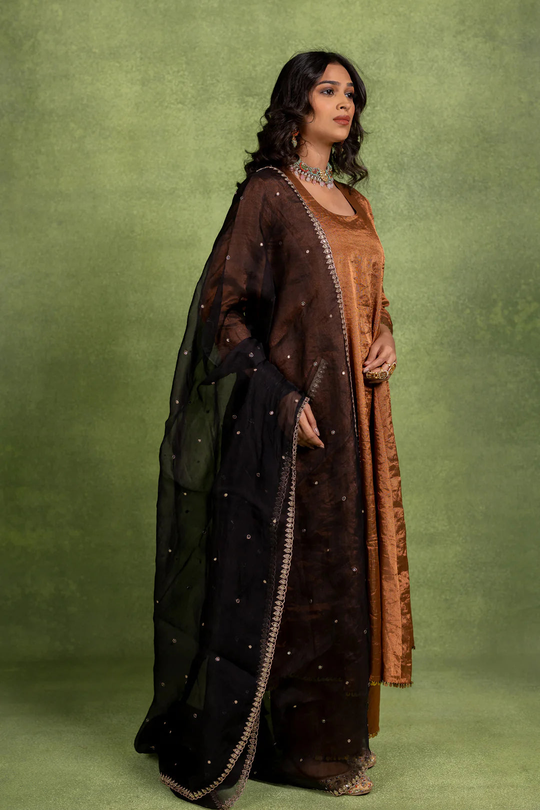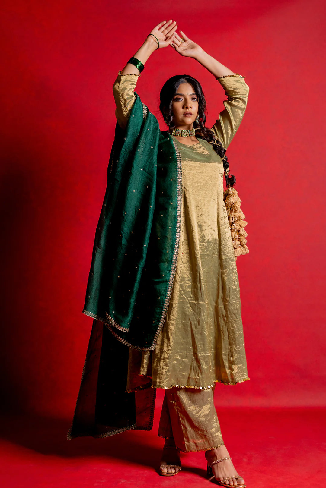 This Coord Set includes an A-line kurta and matching pant with hand-embroidered details on the pocket and dupatta.