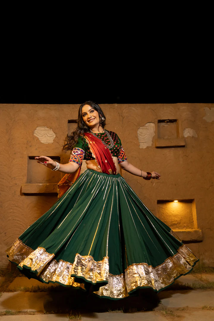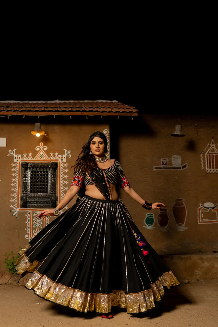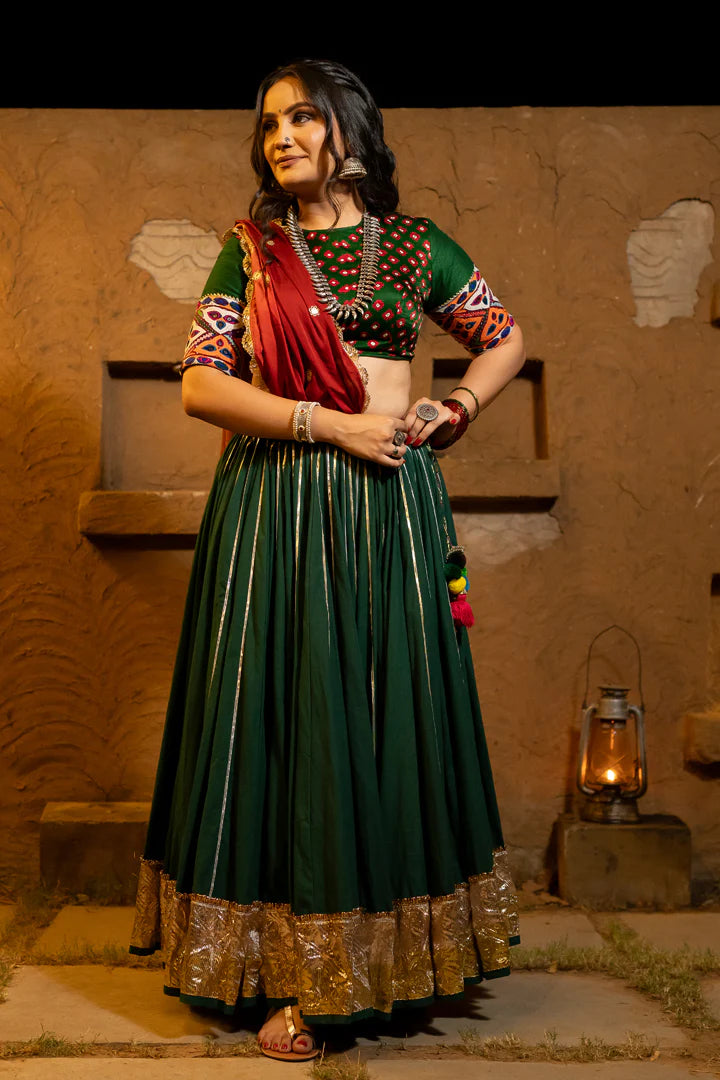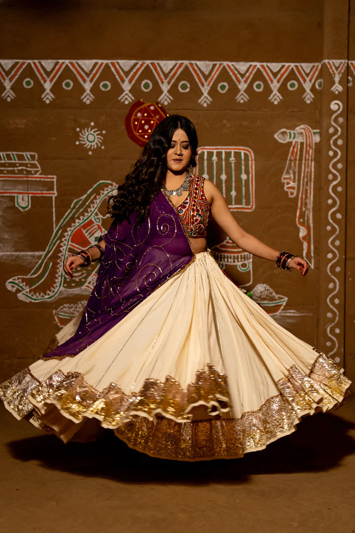 A cotton skirt with toi, 6-inch Lumpi and Kiran lace hem, creating a 15-meter flare.
