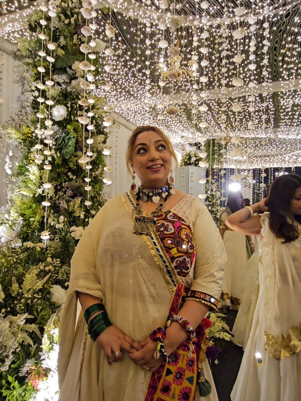 This Set features a Leheriya lumpi gamthi skirt with toi creating a 10-meter flare paired with a bandhani blouse featuring patchwork detailing and a chiffon dupatta with 3/4 patch dupatta has handwork and trims.